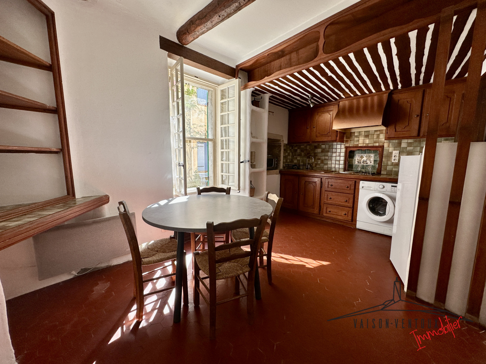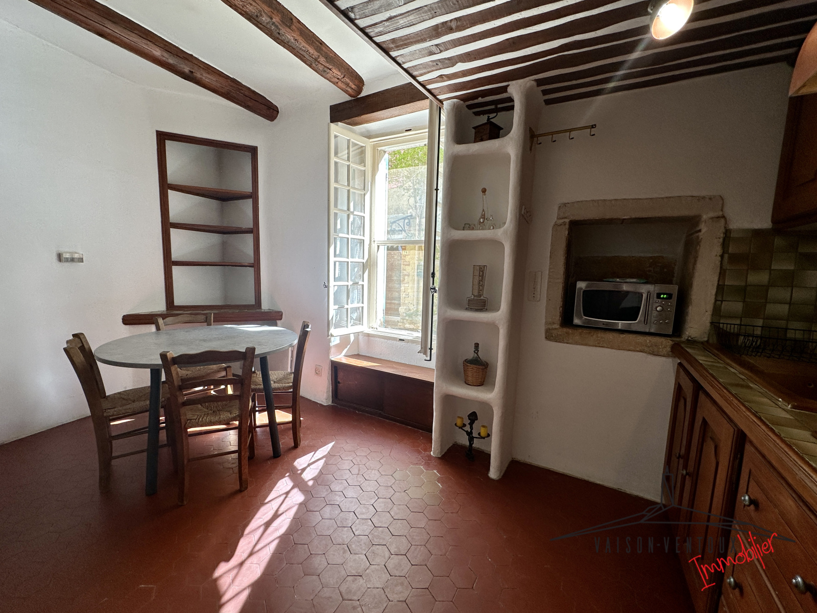 A quelques minutes de Vaison la Romaine, dans un typique village provencal, cette maison de village d'environ 55m2 vous séduira par son charme et son authenticité. Elle se compose d'une cuisine séparée entièrement équipée, d'un salon de 15m2, d'une chambre et d'une salle d'eau avec wc.