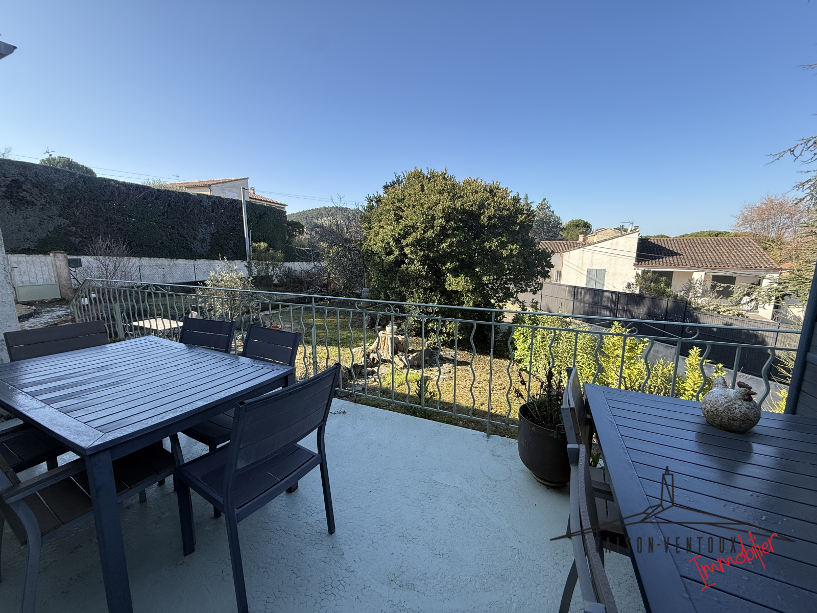 VAISON VENTOUX Immobilier vous propose à la vente cette trés jolie villa comprenant une cuisine ouverte sur séjour, un salon indépendant, deux chambres, une salle d'eau avec douche à l'italienne, un WC indépendant, une buanderie, un abri voiture ainsi qu'un abri jardin.