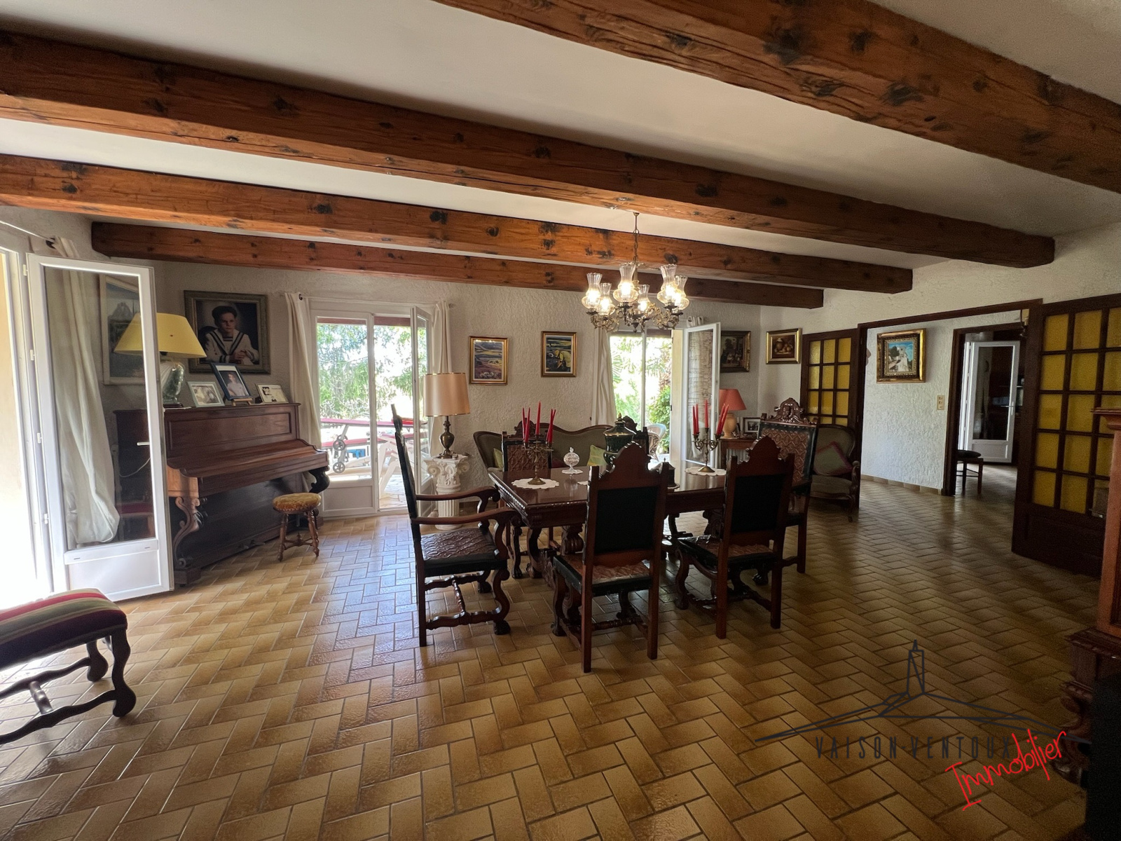 Située à seulement 2KM du centre ville de Vaison-La-Romaine, dans un quartier résidenciel sur un beau terrain de 1396m2, elle dispose d'une partie habitation d'environ 160m2 dont un salon/séjour/cheminée de 54m2, une cuisine de 21m2 et 3 chambres spacieuses.