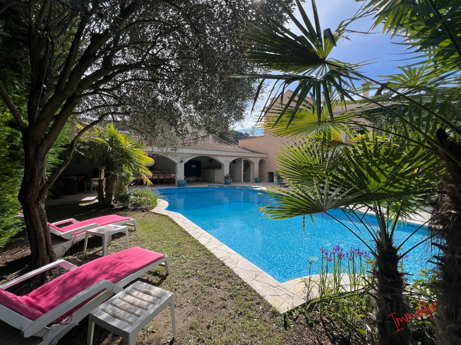 Les atouts : Terrain entièrement clos, jardin paysager, piscine à débordement de 14m X 7m, terrasse couverte côté piscine de 100m2 avec cuisine d'été, garage de 49m2, nombreuses dépendances, beaux volumes intérieurs, maison lumineuse, four à pizza, forage, arrosage automatique.
