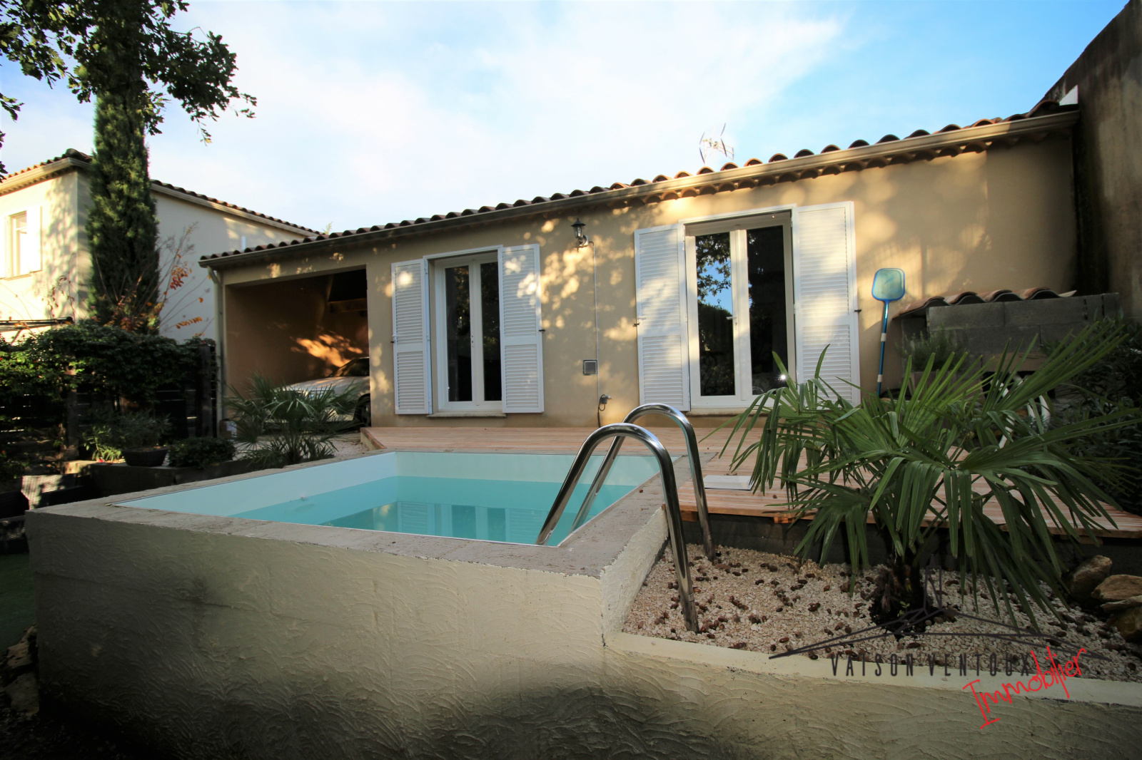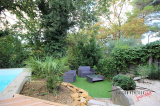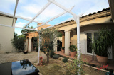 Une construction récente et lumineuse, un vaste séjour donnant sur terrasse, jardin et piscine, une cuisine ouverte, 2 chambres, une salle de bain, un WC indépendant, de belles terrasses ainsi qu'un abri voiture.